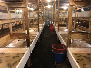 Sample soft shell crab facility in the museum (left) versus a real facility on the Eastern Shore (right).